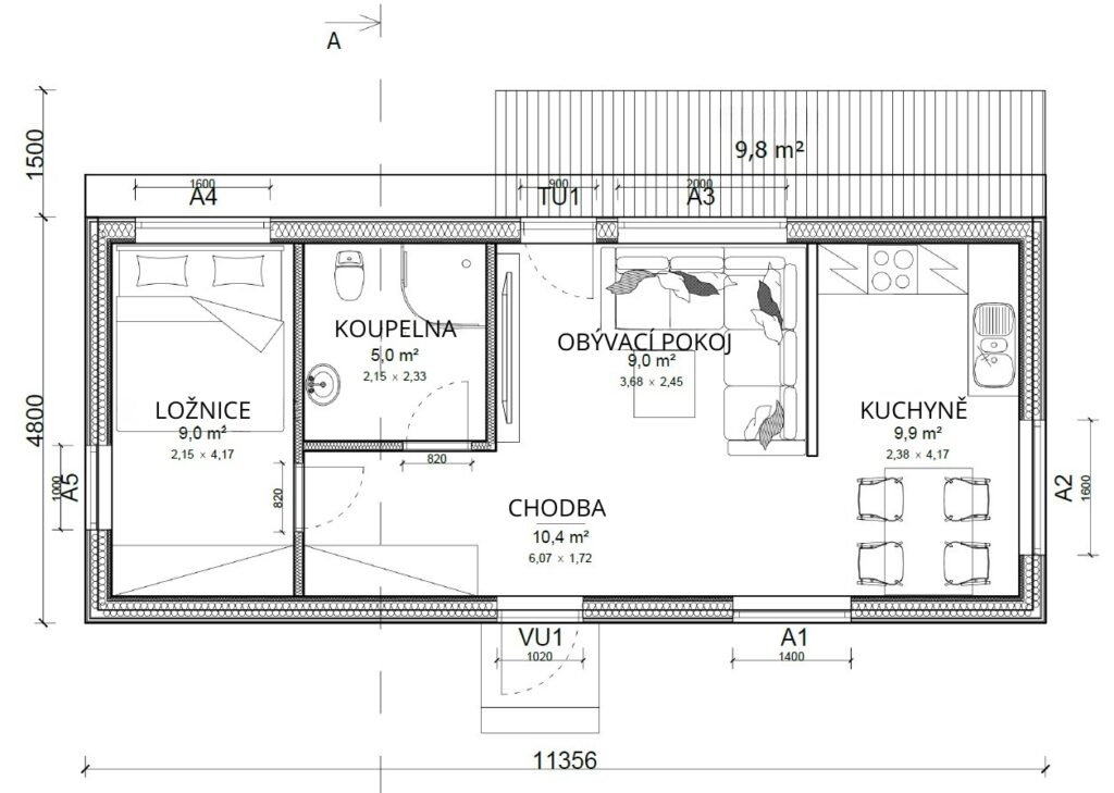 - Terasa – 9,8 m²