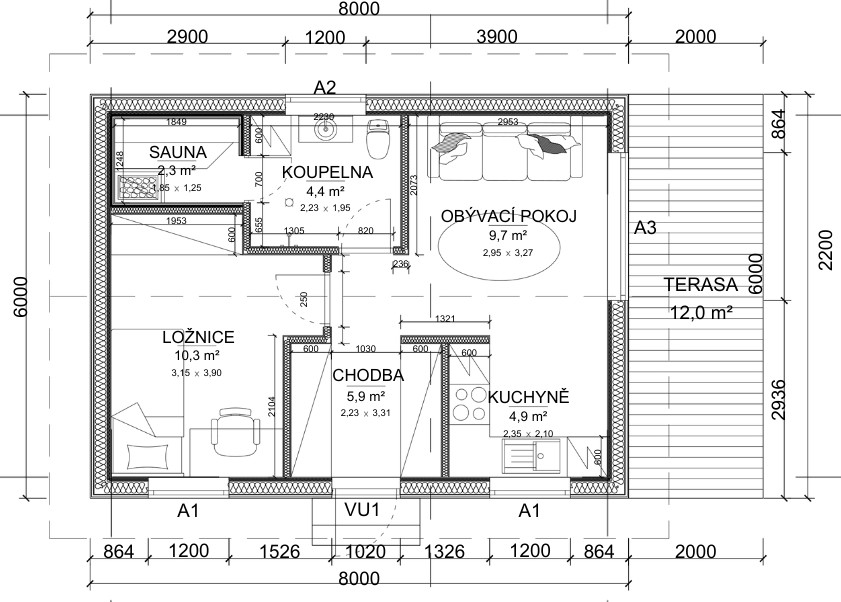 • Konstrukce: prefabrikovaný panelový systém z kvalitního severského dřeva