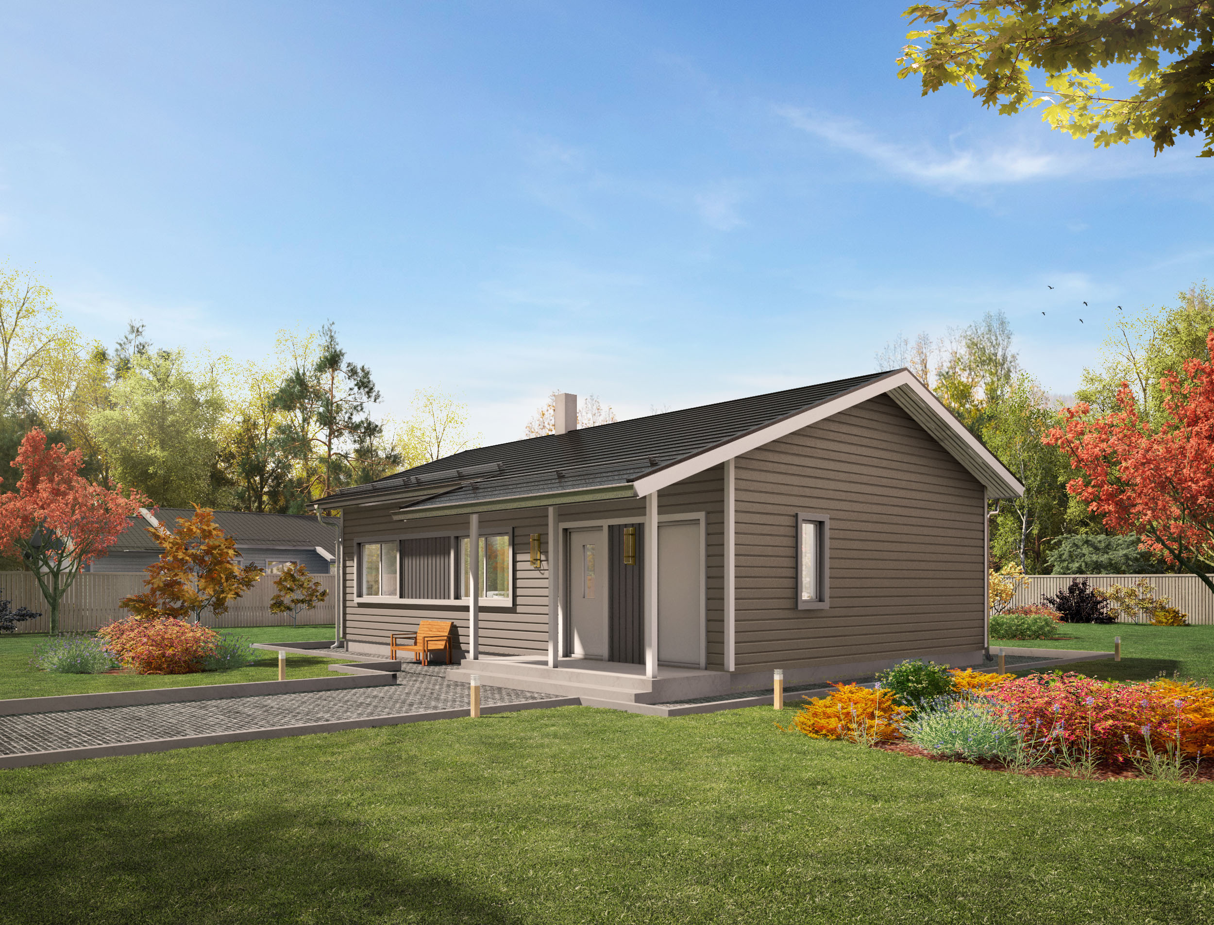 Je ideální volbou pro ty, kteří chtějí dům s jednoduchou montáží, příjemným designem a plnohodnotným obytným zázemím.