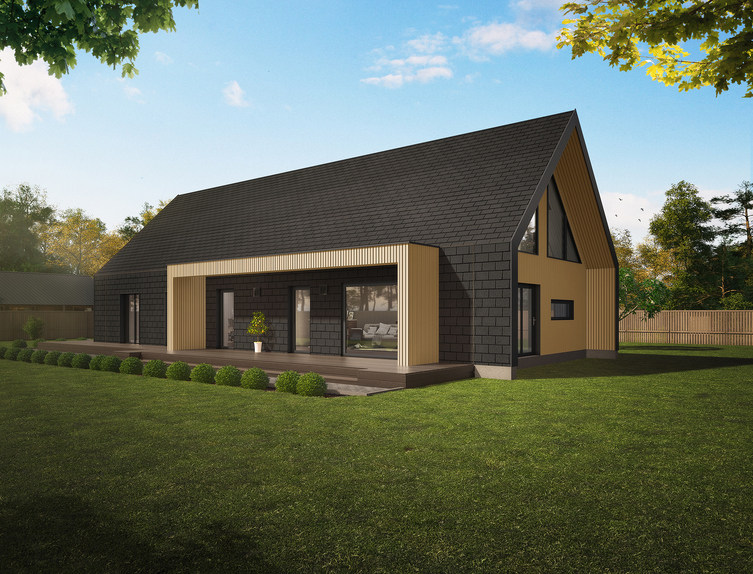 ✅ Moderní architektura s tradičním tvarem střechy