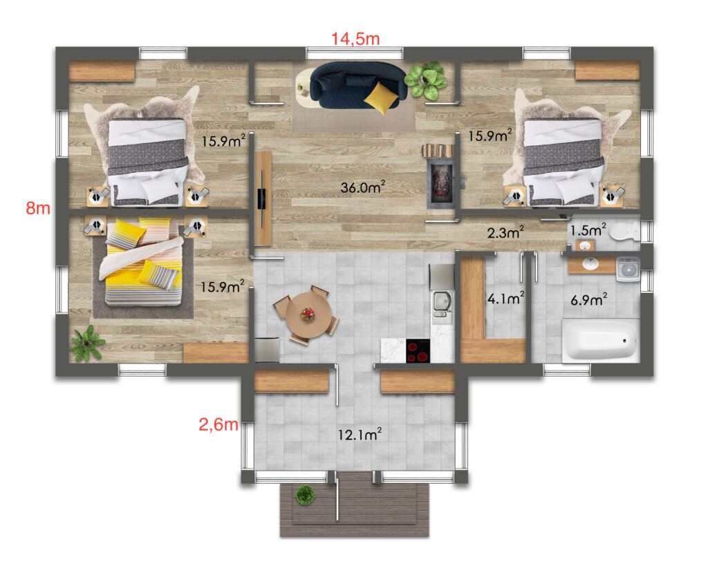 - Ložnice 3 – 15,9 m²