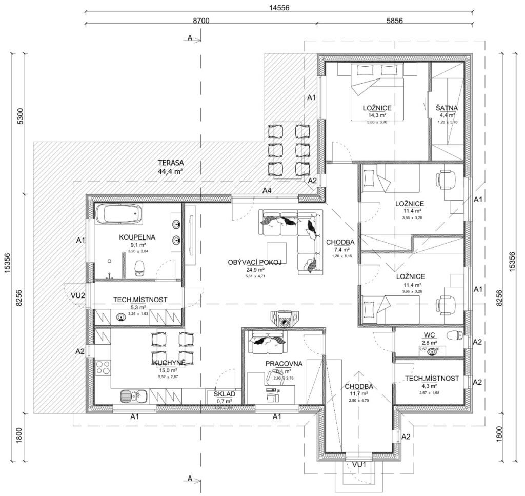 - Technická místnost – 5,3 m²
