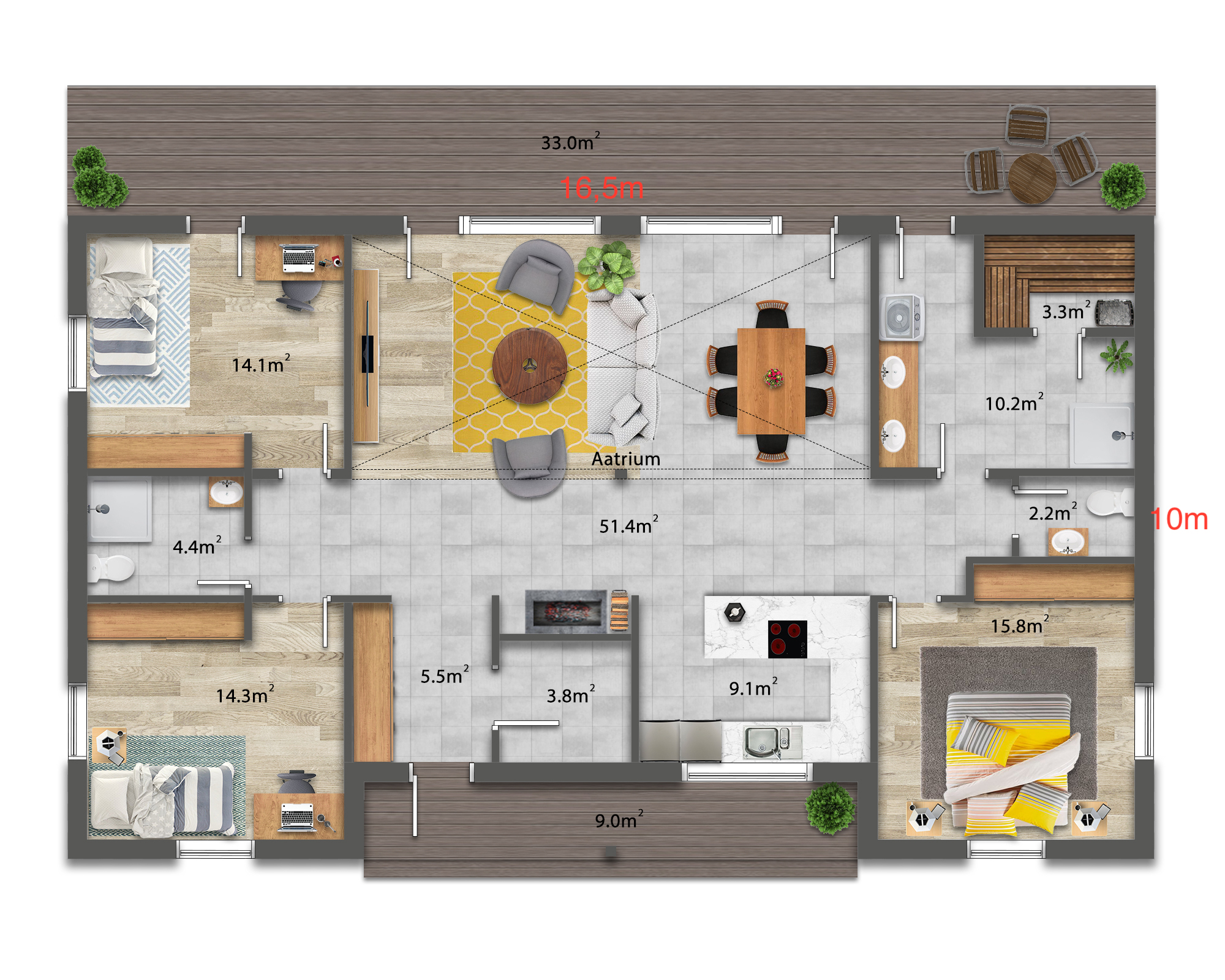 • Sauna: 3,3 m²