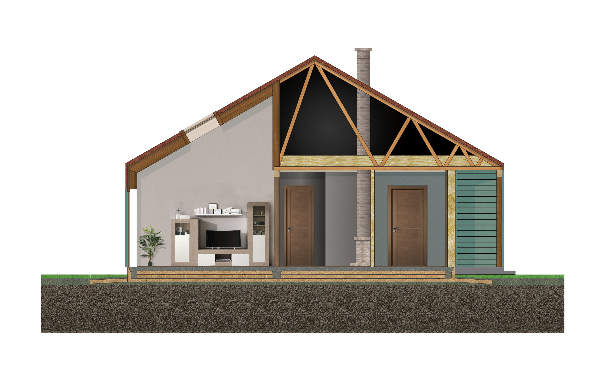 Konstrukce z prefabrikovaných dřevěných panelů zajišťuje vysokou kvalitu, vynikající tepelně-technické vlastnosti a velmi rychlou montáž.