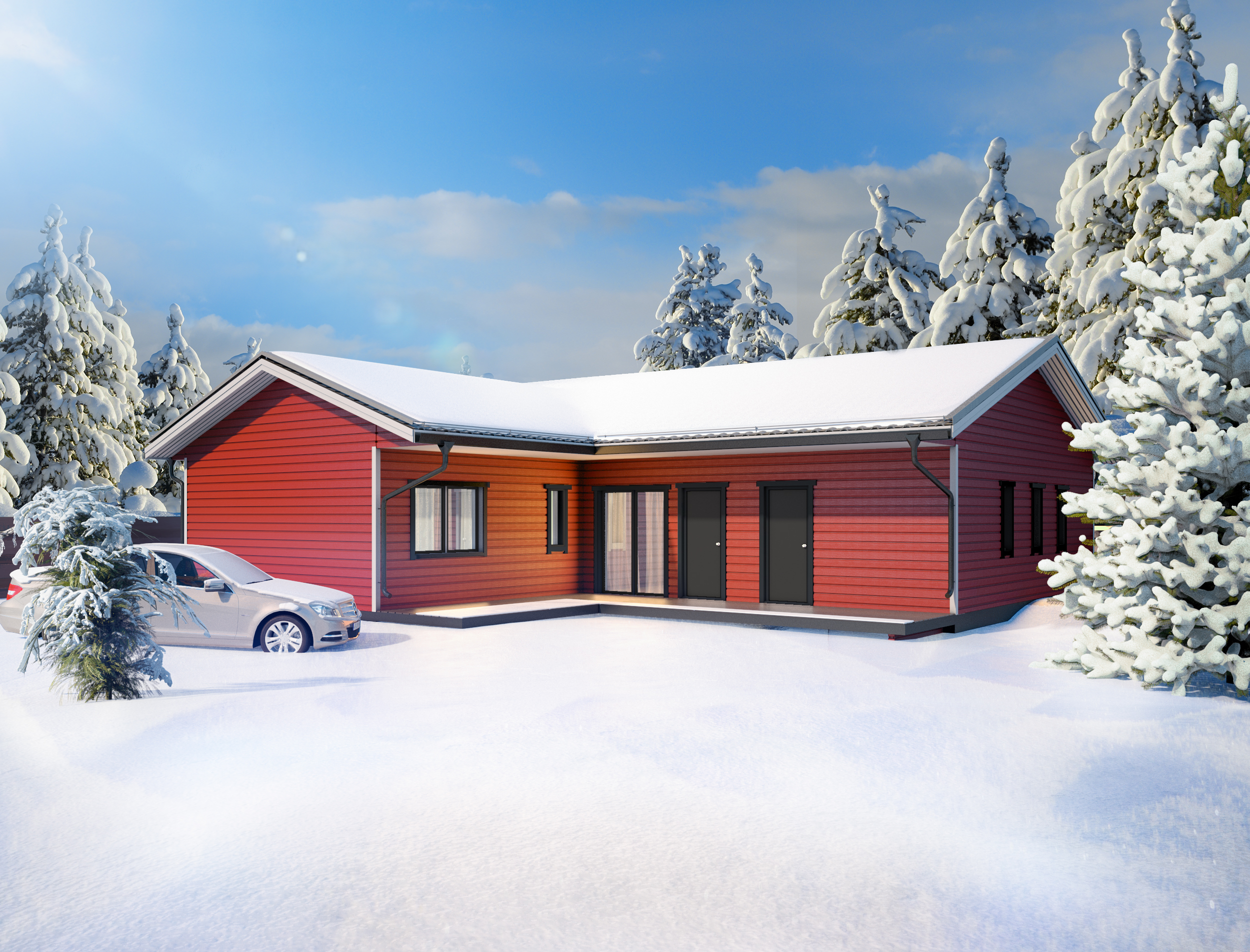 Prefabrikovaná dřevostavba z kvalitního severského dřeva zajišťuje rychlou montáž a vysoký standard bydlení.