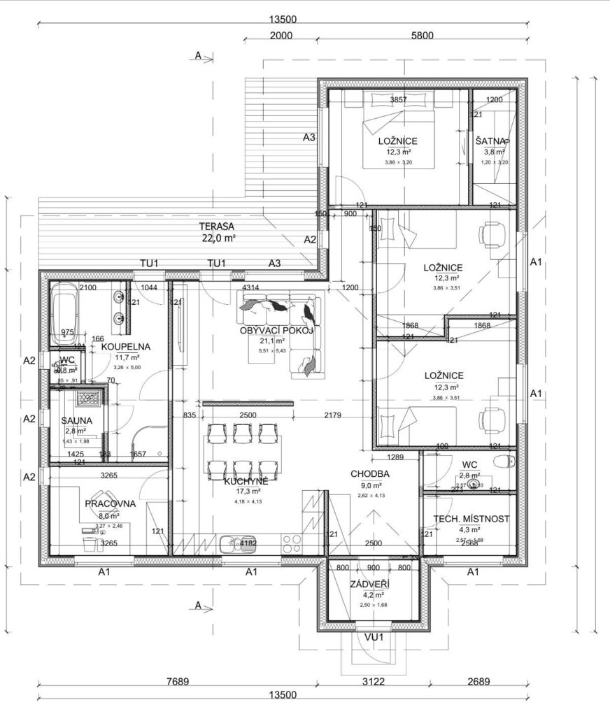Díky chytré dispozici nabízí tři samostatné ložnice, velký obývací prostor a krytou terasu přístupnou přímo z obýváku.