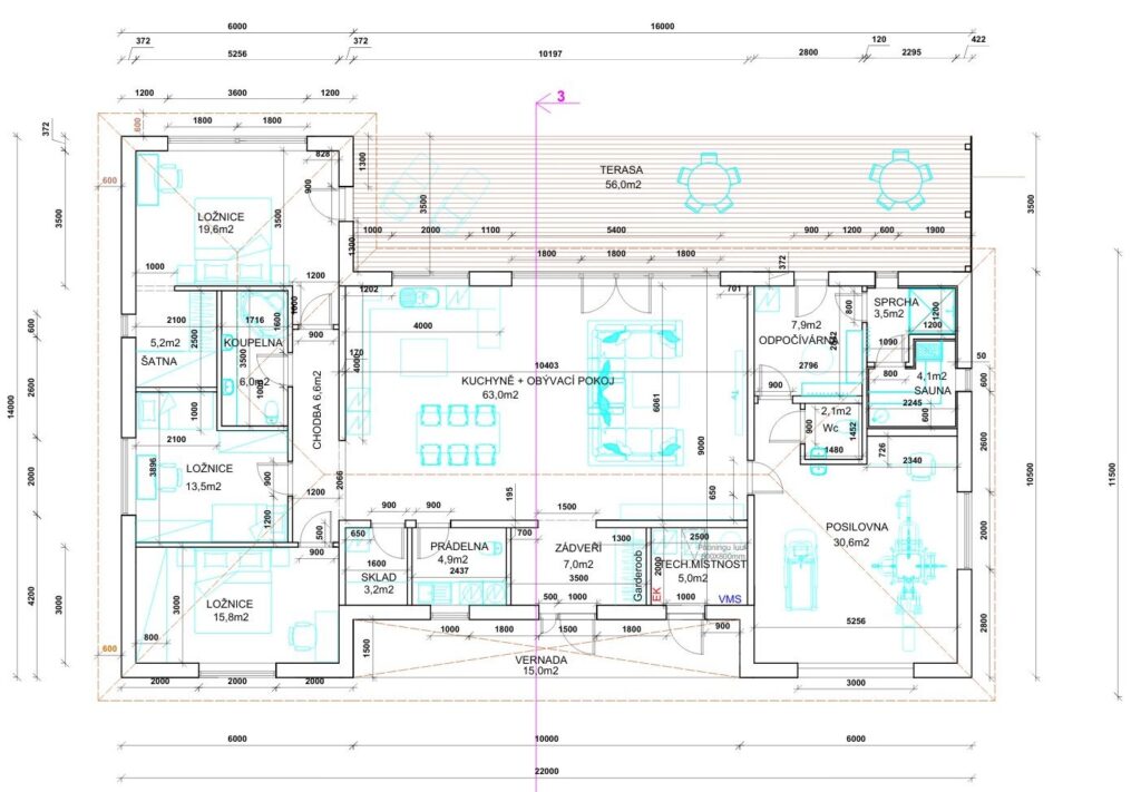 Rozměry domu: 22,0 × 14,0 m