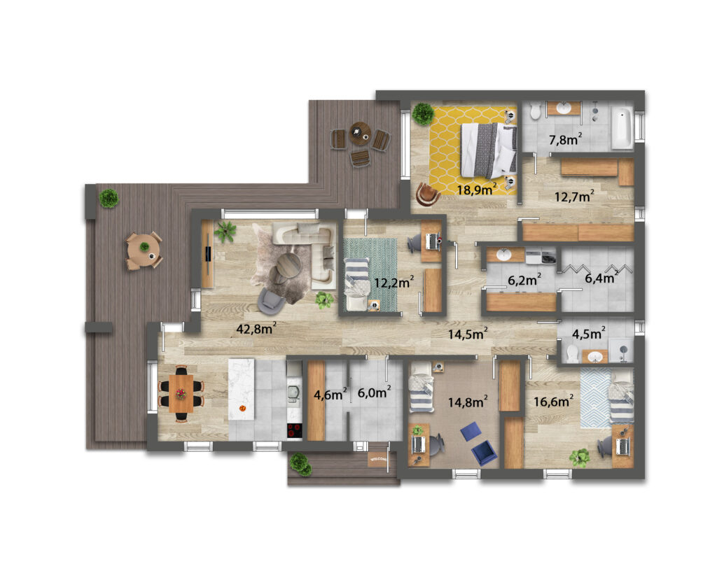 ✅ Velká terasa propojující interiér se zahradou