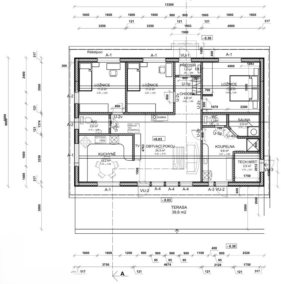 Bez oken, dveří, fasádního obkladu a střešní krytiny – určeno pro vlastní dokončení