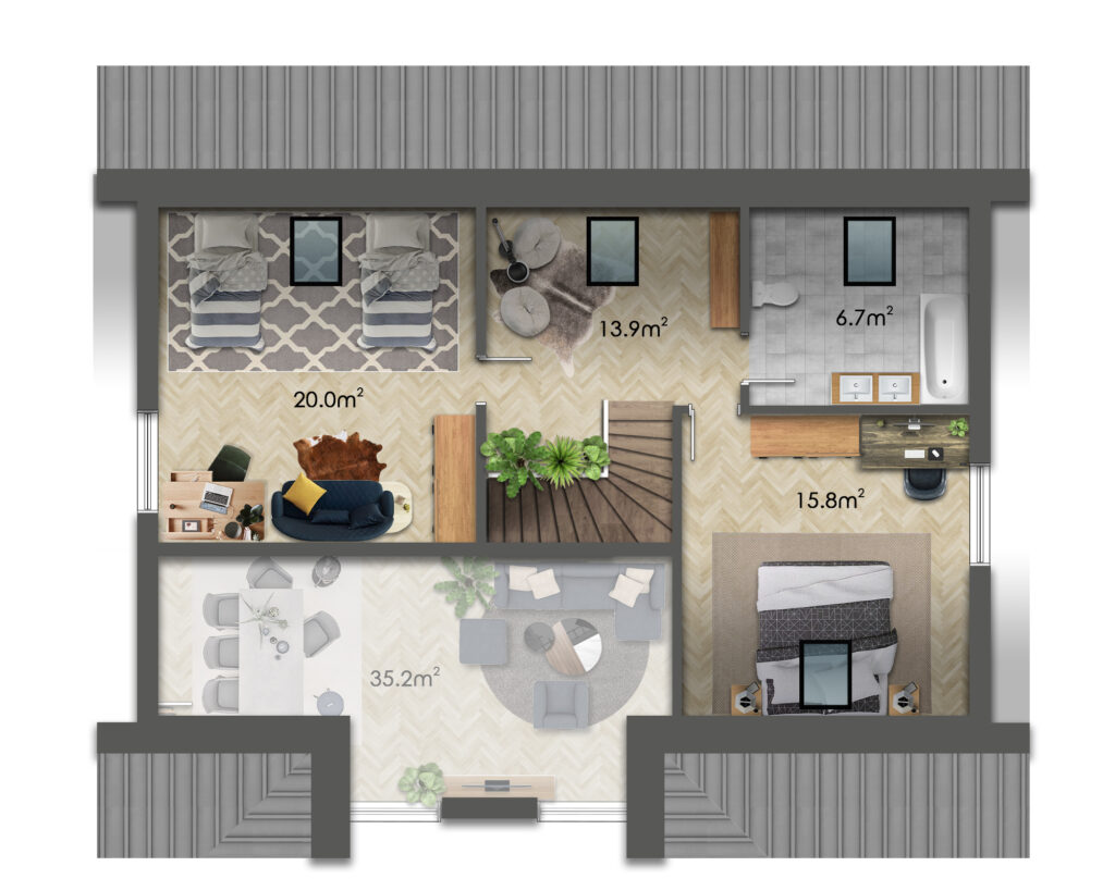 ✅ Variabilní využití místností – pracovna, pokoj pro hosty