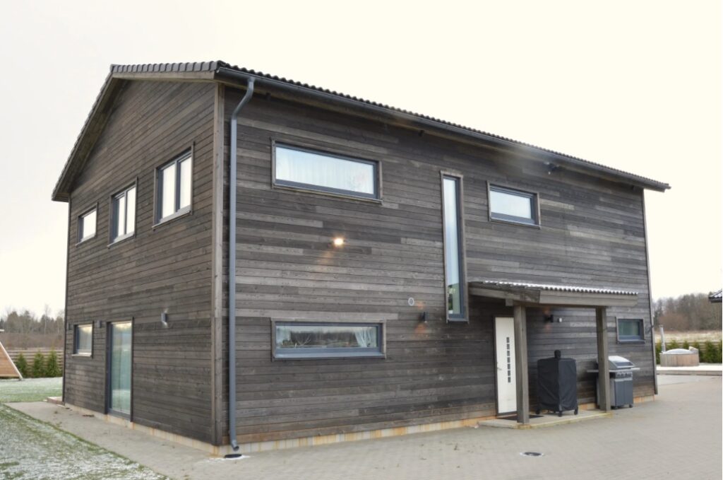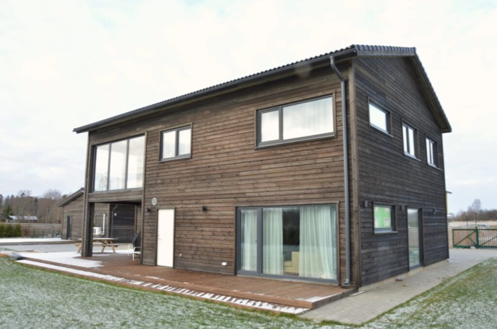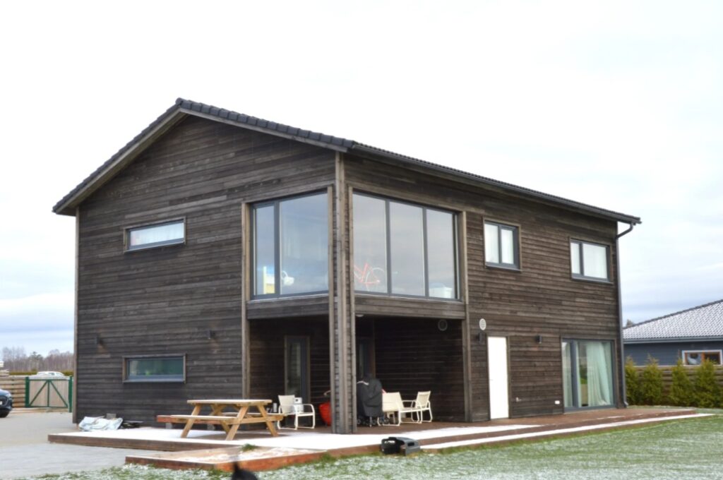- Konstrukce: prefabrikovaný panelový systém z masivního severského dřeva