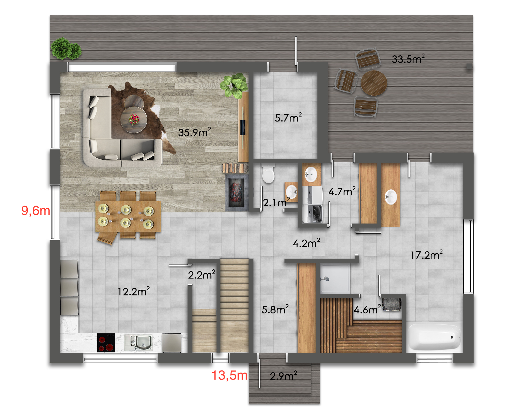 - Sauna – 4,7 m²