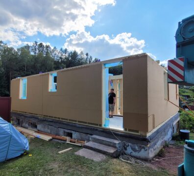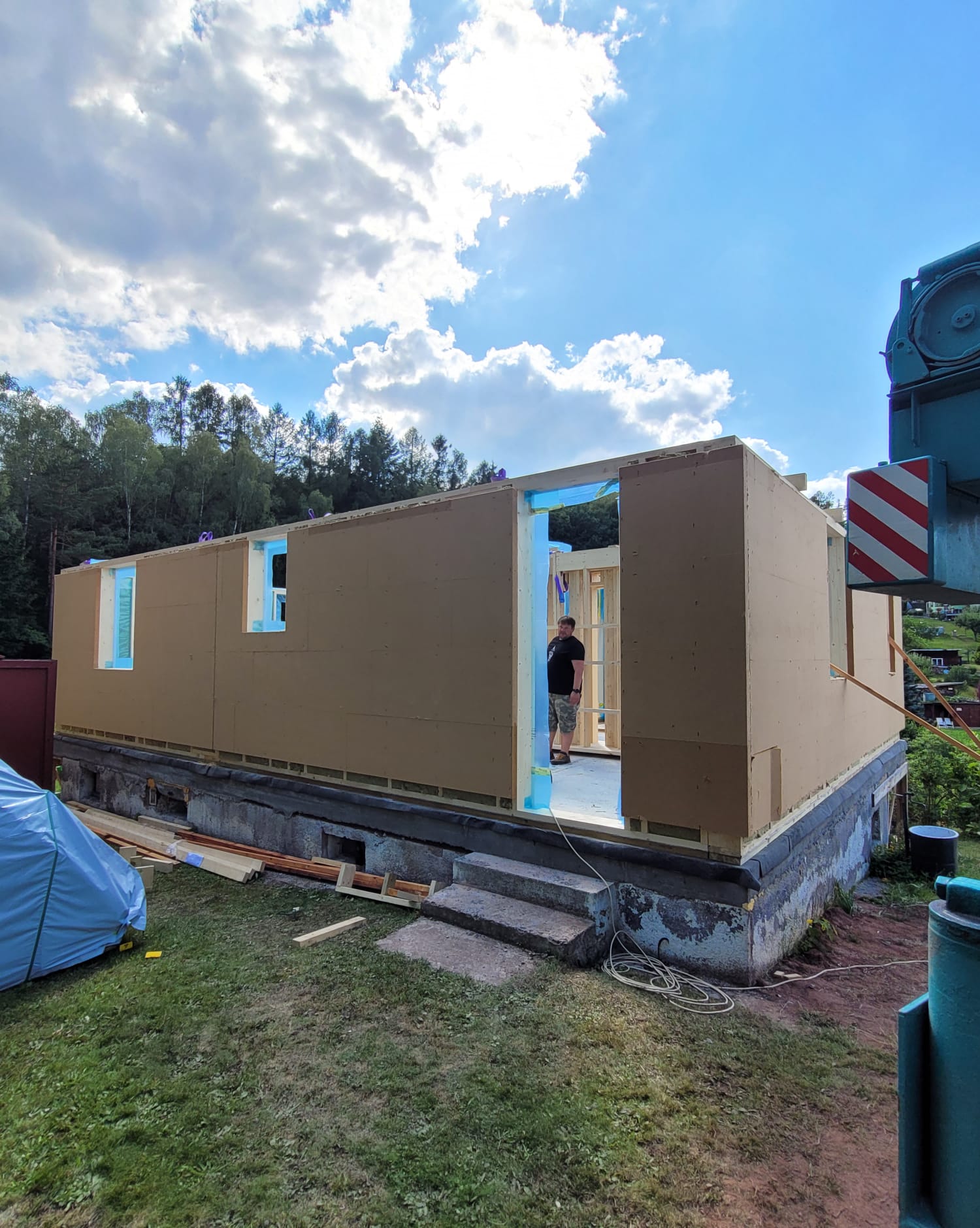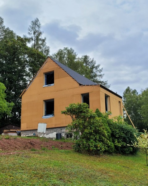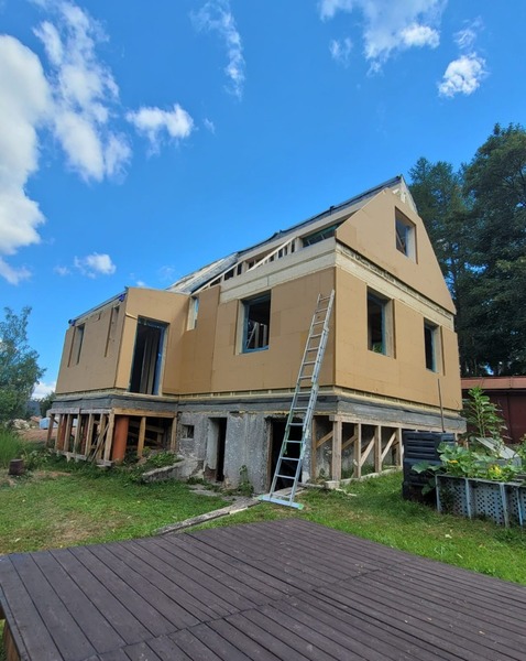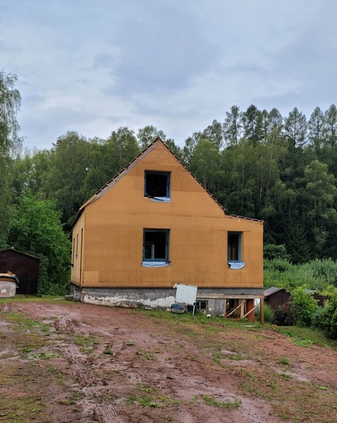 V průběhu měsíce srpna jsme dovezli stavebnici domu z naší továrny v Estonsku. Partner pro výstavbu Energy Efficient Building s.r.o. zahájil práce. Za 3 dny byla hrubá stavba domu hotova. Po demolici stávající chaty, vystavíme upravenou chalupu ASTRID k trvalému bydlení. Dům bude vyroben s paneláže v systému ThermoWood.