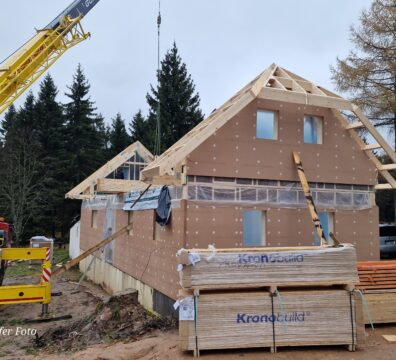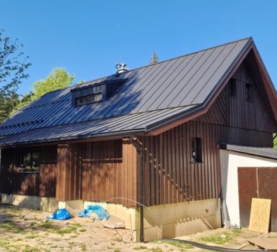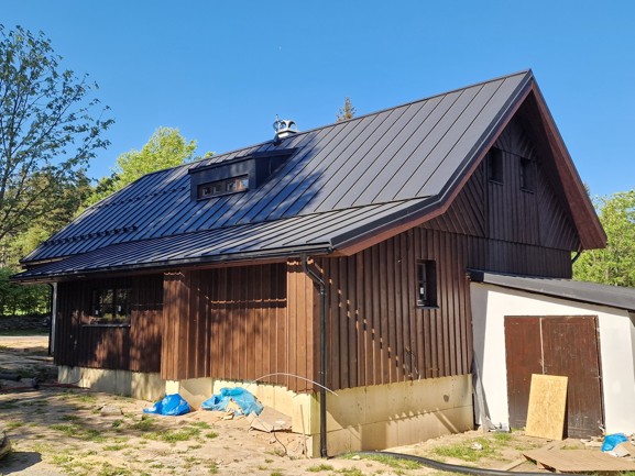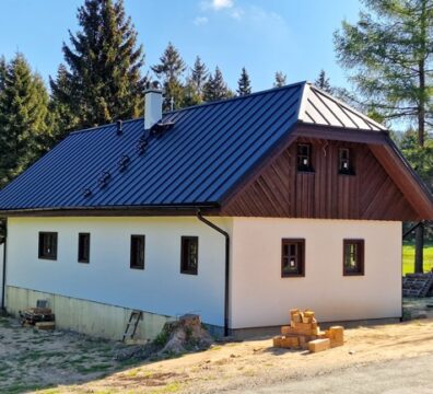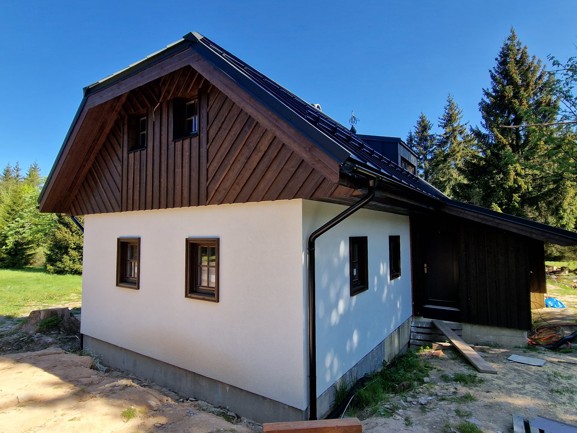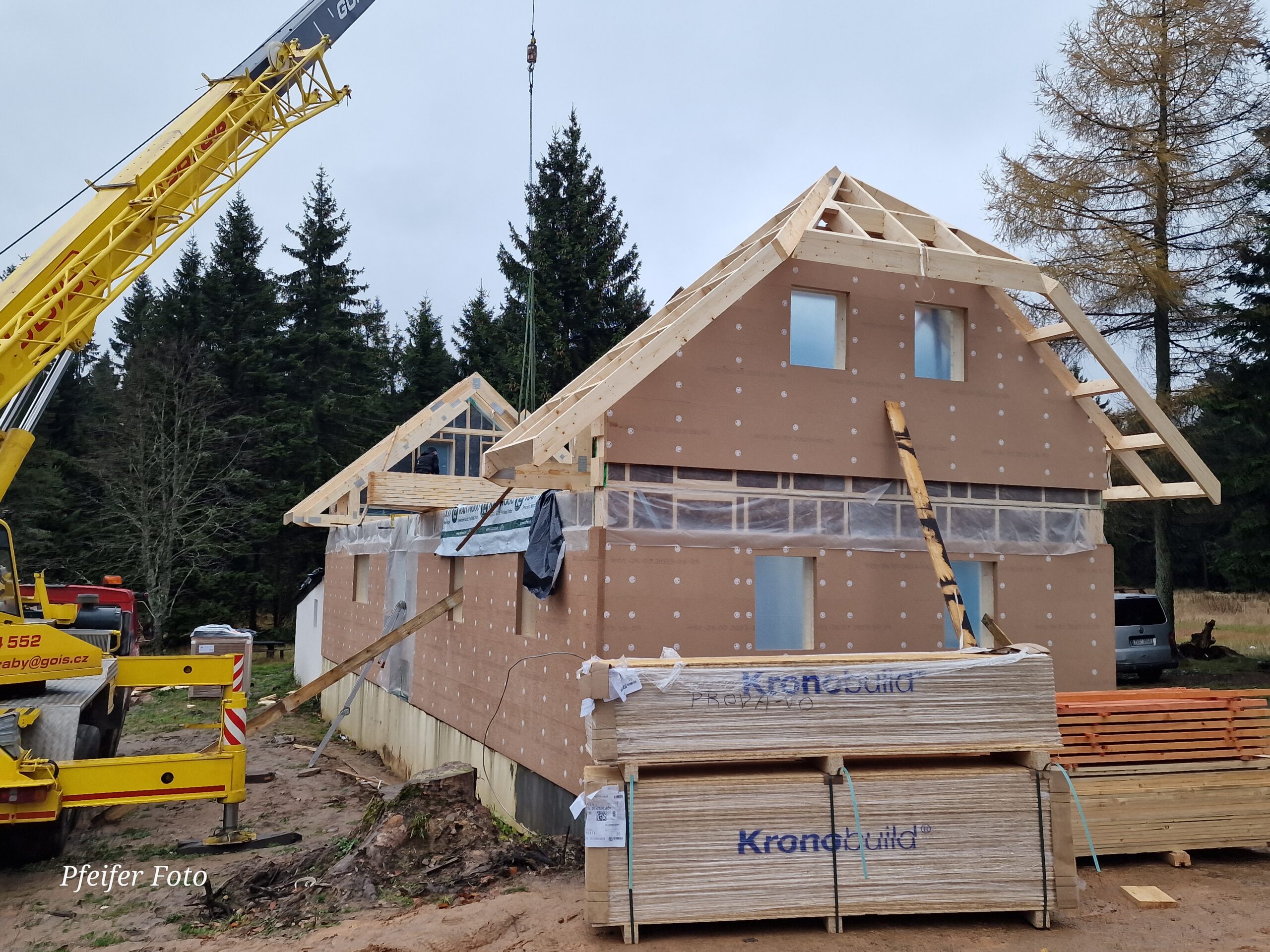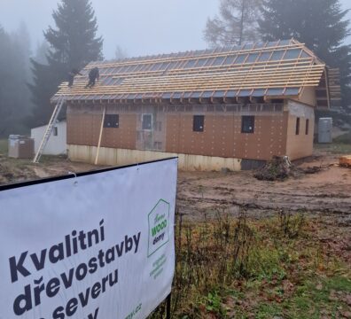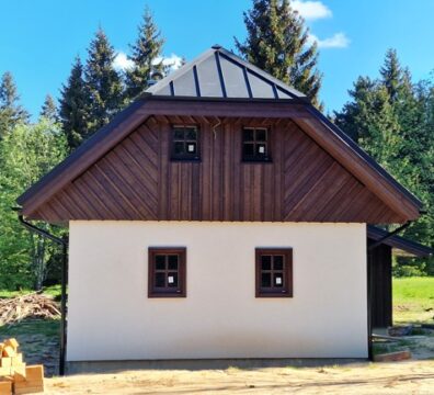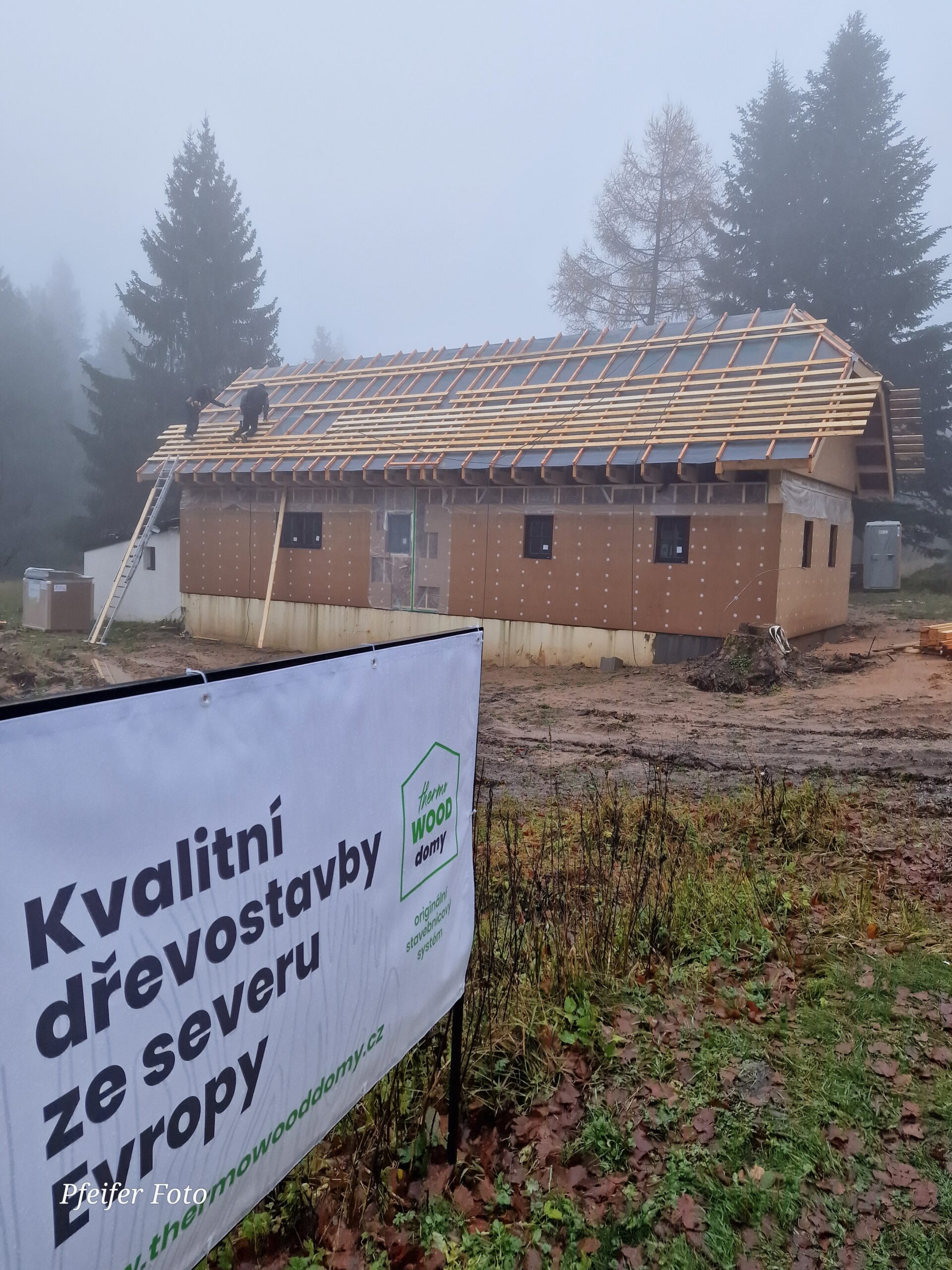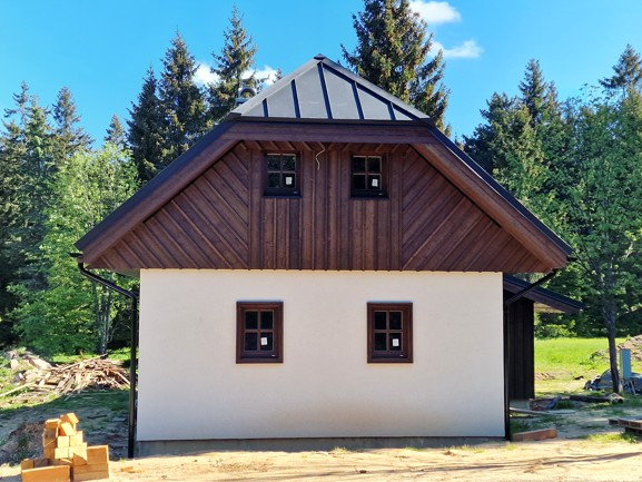 Stavebnice rekreační chalupy, která bude stát v Luisině údolí v Orlických horách, je ve výrobě v naší továrně v Estonsku.