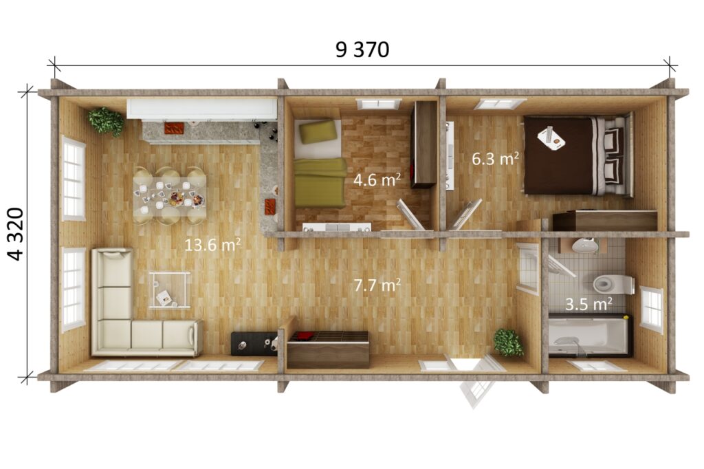 Albrigsten 70 je moderní přízemní dřevěný dům z masivního dřeva s vnější stěnou 70 × 135 mm, v nadčasovém skandinávském stylu se sedlovou střechou. Vyniká praktickým uspořádáním, dostatkem přirozeného světla a kompaktní, ale velmi efektivní dispozicí, která poskytuje komfortní zázemí pro každodenní využití i rekreační pobyty.