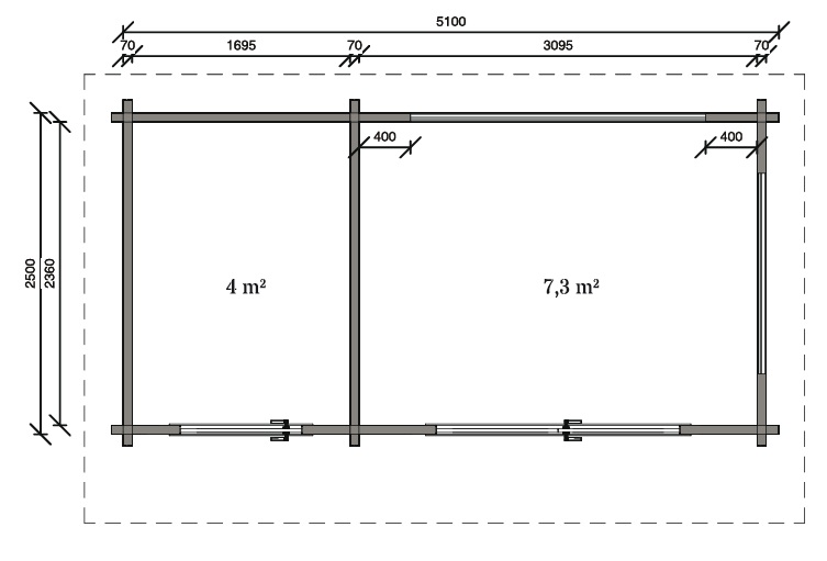 Vnější rozměry stavby: cca 5,1 × 2,3 m