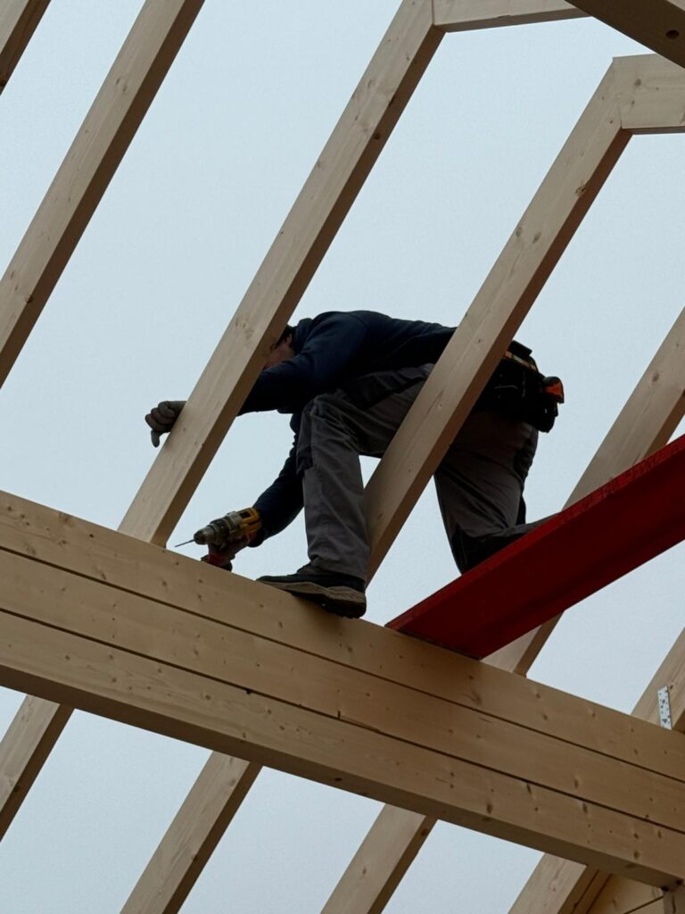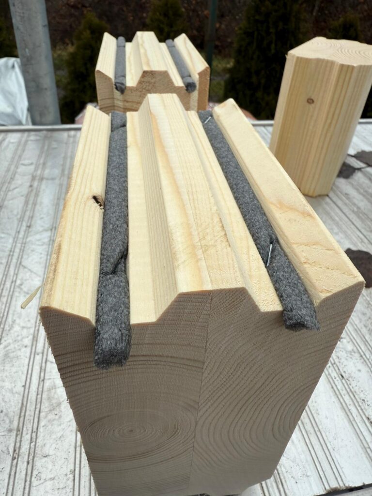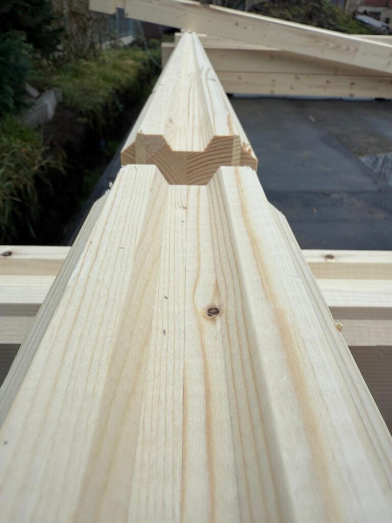 Konstrukce je tvořena masivními dřevěnými profily s přesným dílenským opracováním, které umožňuje rychlou a přesnou montáž.
