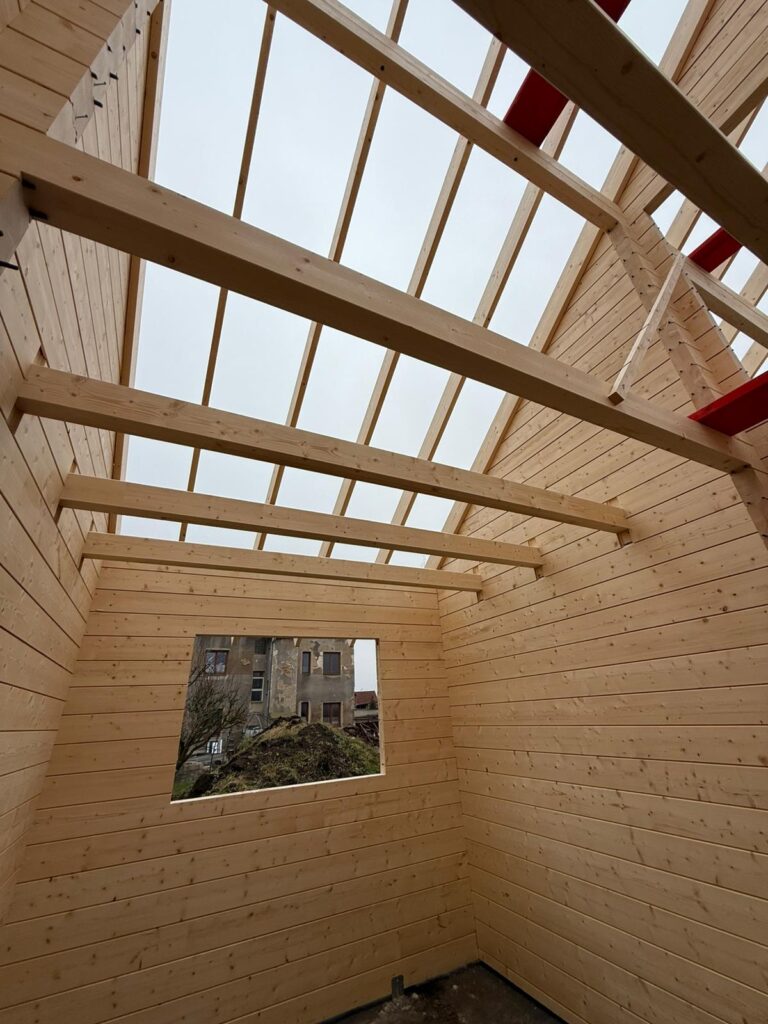 - izolovaný strop ( u více podlažních srubů )