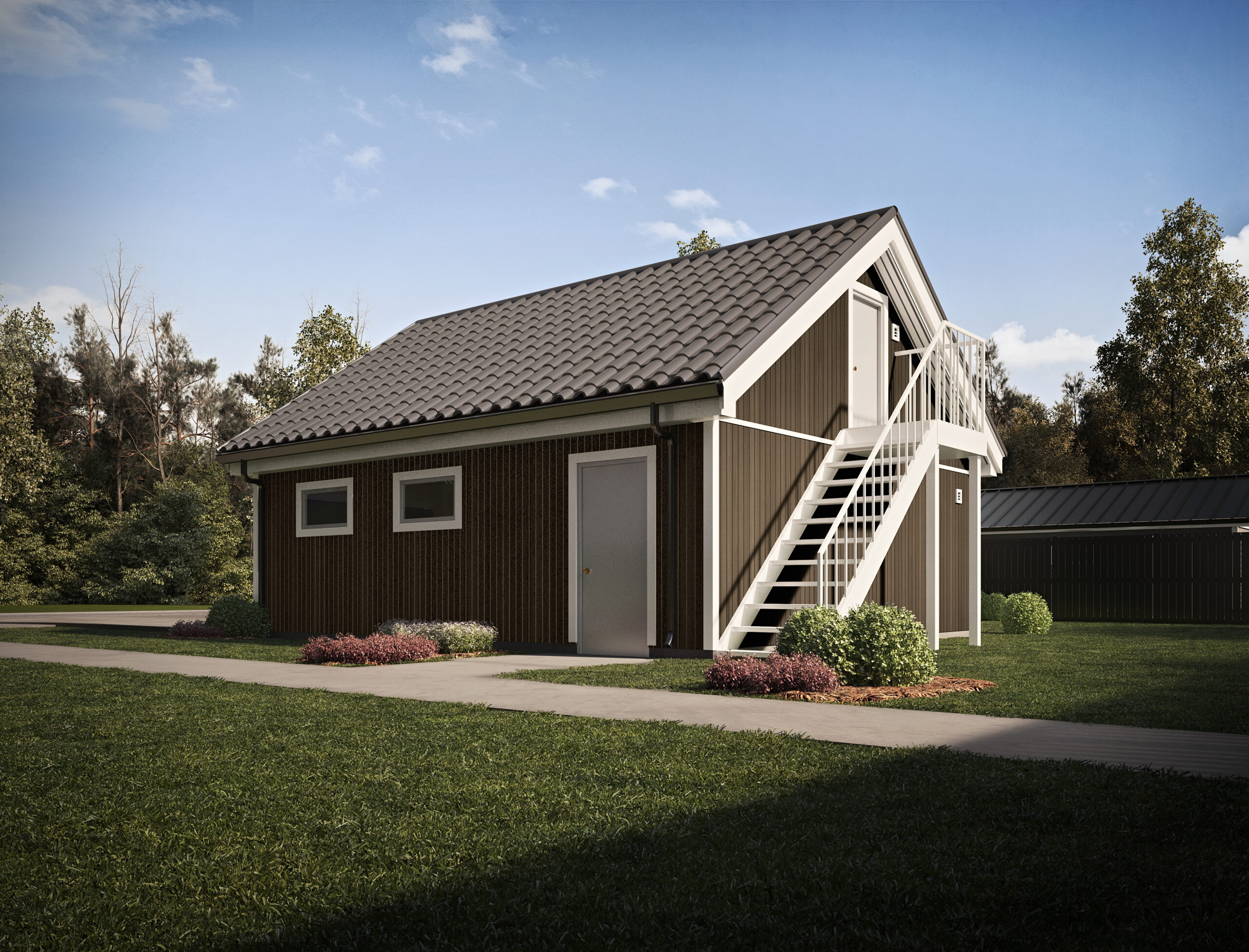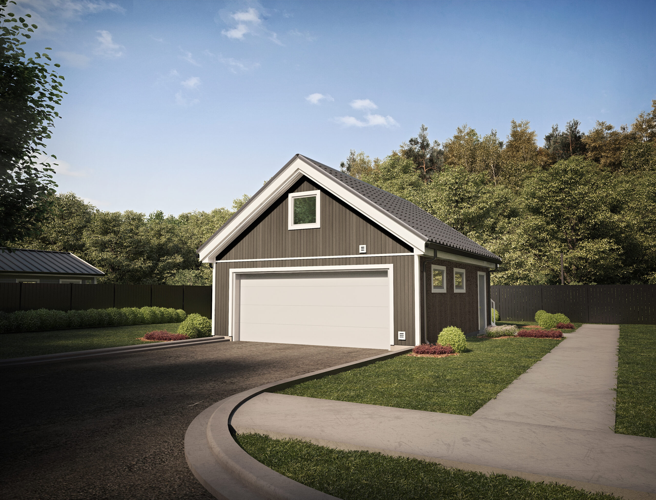 Praktická garáž s podkrovním prostorem – ideální kombinace parkování, dílny a úložného prostoru v jednom.