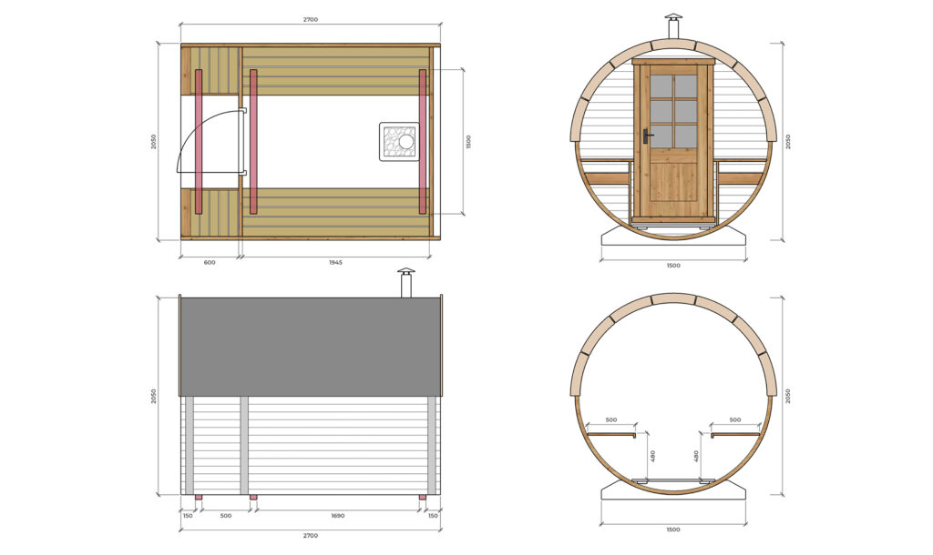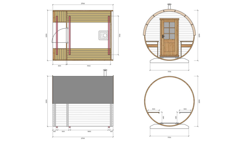 Barelová sauna s terasou (2,7m)