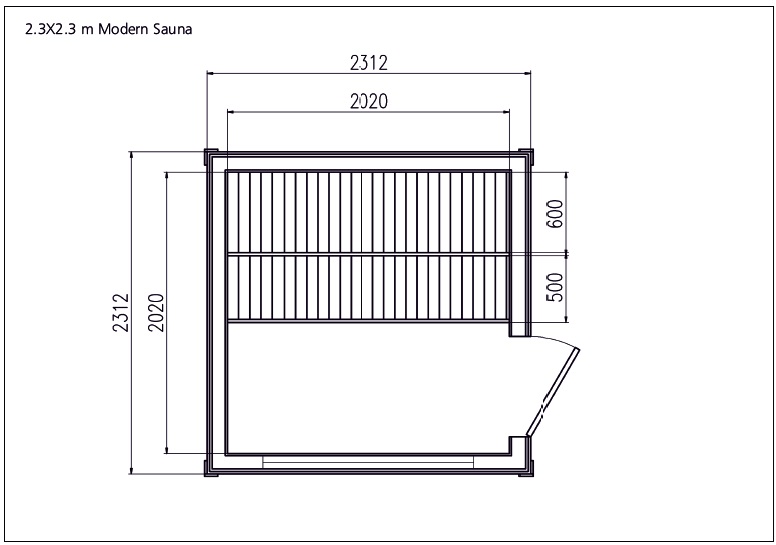 - Dveře: lepené borovicové, dvojité prosklení, uvnitř sauny tvrzené sklo: 690 x 1800 mm
