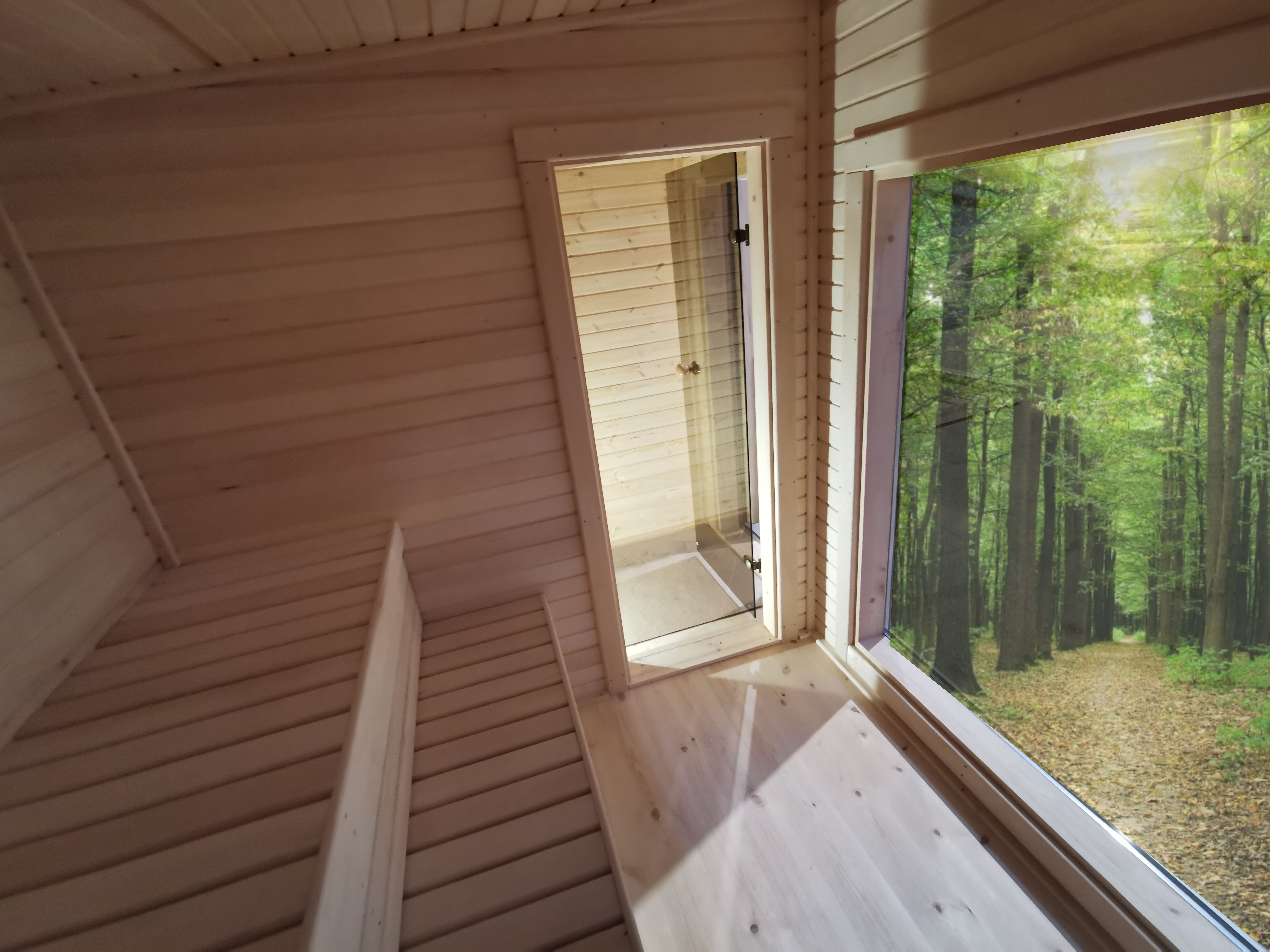 - Panoramatické okno sauny: dvojité prosklení, vnitřní sklo sauny je tvrzené: 1620 x 1600 mm